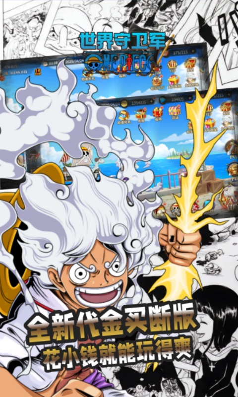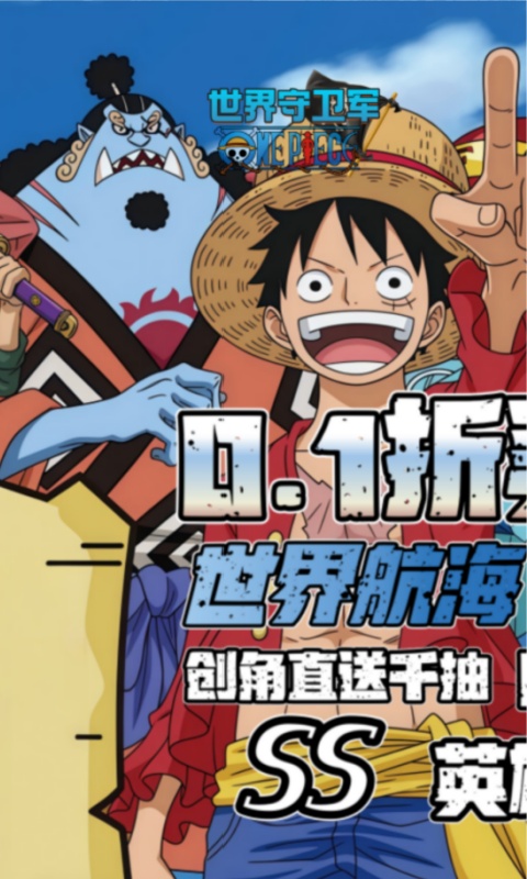 【世界守卫军(0.1折日送代金买断版)】是一款正版横版海贼卡牌游戏!游戏内真实还原了路飞一路成长的历程,一路挑战各个关卡,收入各个动漫里面脍炙人口的人物作为自己的伙伴,一起征战新世界!新版买断版强势来袭,首续充值0.1折,每日签到赠送2000代金券,爽玩停不下来;七天奖、新手狂欢、升级奖励、满月礼等大量福利活动,送超多充值卡、体力、抽卡等战力道具。