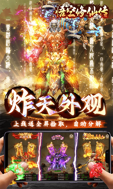 《悟空修仙传》是一款好玩刺激的玄幻西游角色扮演手游,不仅传承了《西游记》经典文化,还在游戏中融入了许多创新元素和特色系统,包括天降神将、大圣归来、证道成神等特色玩法,力求给玩家带来全新的西游体验。在游戏中玩家将来到西游世界,化身天命之人,与众多神将一起重走西游之路,玩家完成主线修仙手札可以获得神将皮肤、稀有灵环以及绝品时装等珍稀道具,并且挑战各路首领完成通缉任务可以免费获得海量福利。